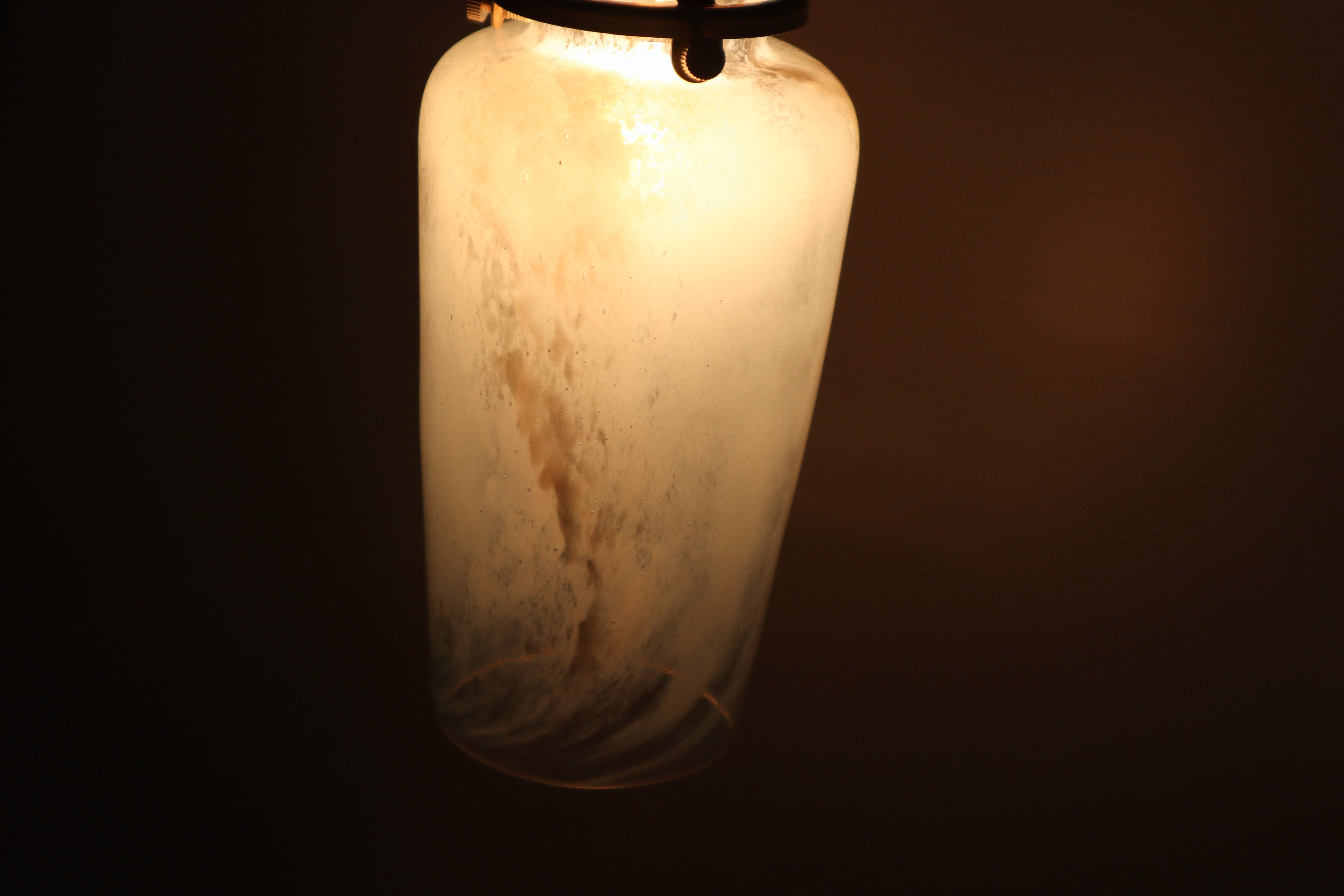かつて職人たちは白いガラスを「白玉」と呼び、乳白の灯罩として多く用いた。時を経て閉じられた工場の在庫を集め、現代の暮らしに新たなかたちでよみがえらせた。